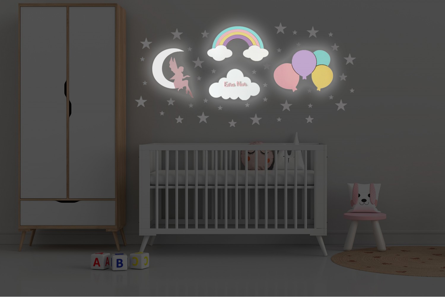 Her gece lambası, doğal boyalarla özenle elde boyanmıştır ve benzersiz, yumuşak bir görünüm sunar. Her parçayı özel kılan bu el işçiliği, çocuğunuzun odasına büyülü bir dokunuş katar.