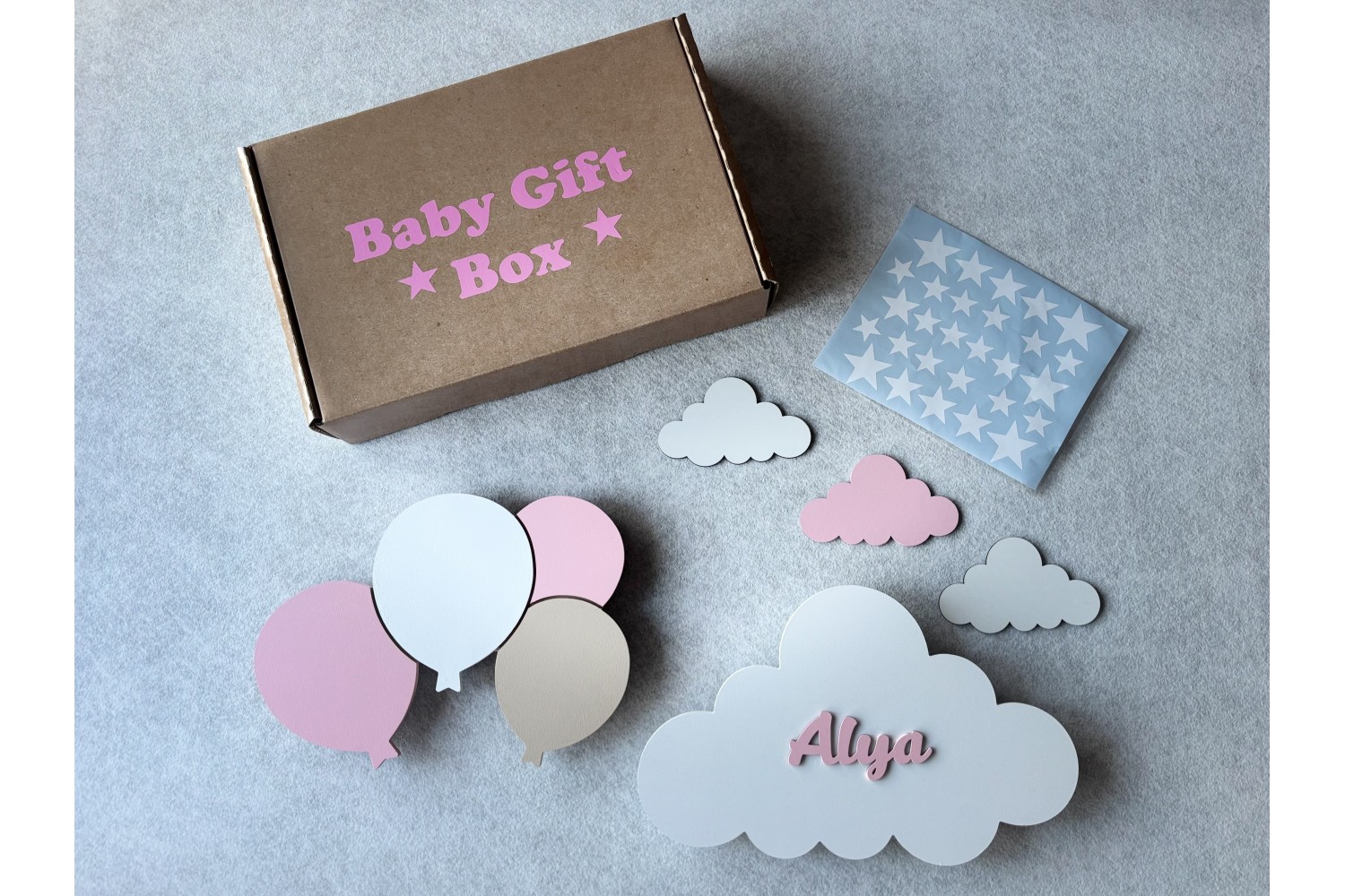 El boyaması bebeğin ismine özel bulut lamba, çoklu balon lamba, ahşap bulut süsler ve yıldız stickerlar ile bebeğin odasını ilk günden sıcacık bir masal köşesine dönüştürür.