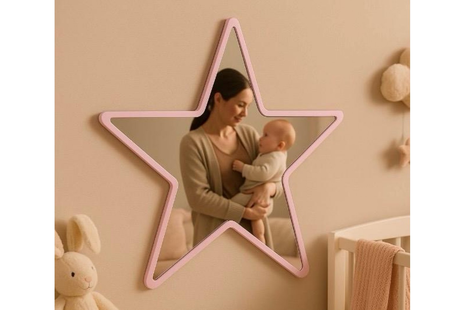 Yıldız Ayna, bebek odalarına güvenli, zarif ve modern bir dokunuş ekler. Estetik ve fonksiyonellik bir arada sunan bu ayna, hem güvenli hem de dekoratif bir seçenek arayan ebeveynler için mükemmel bir tercih olacaktır.