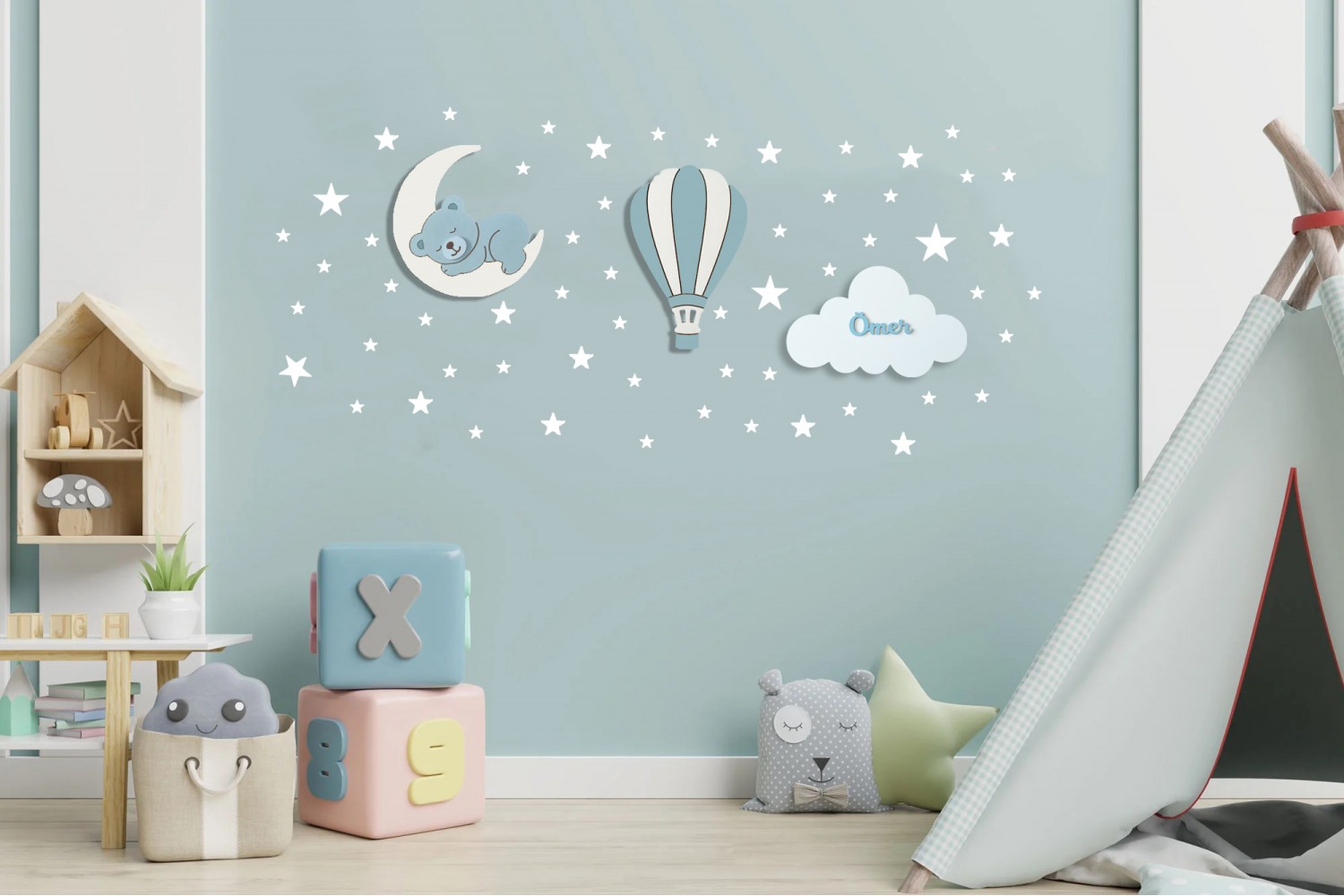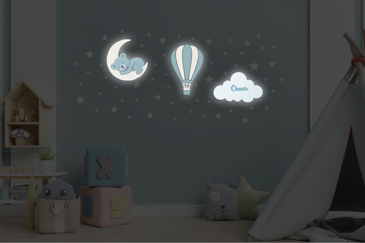 1 Beyaz Ay üzeri Mavi Ayıcık Lamba