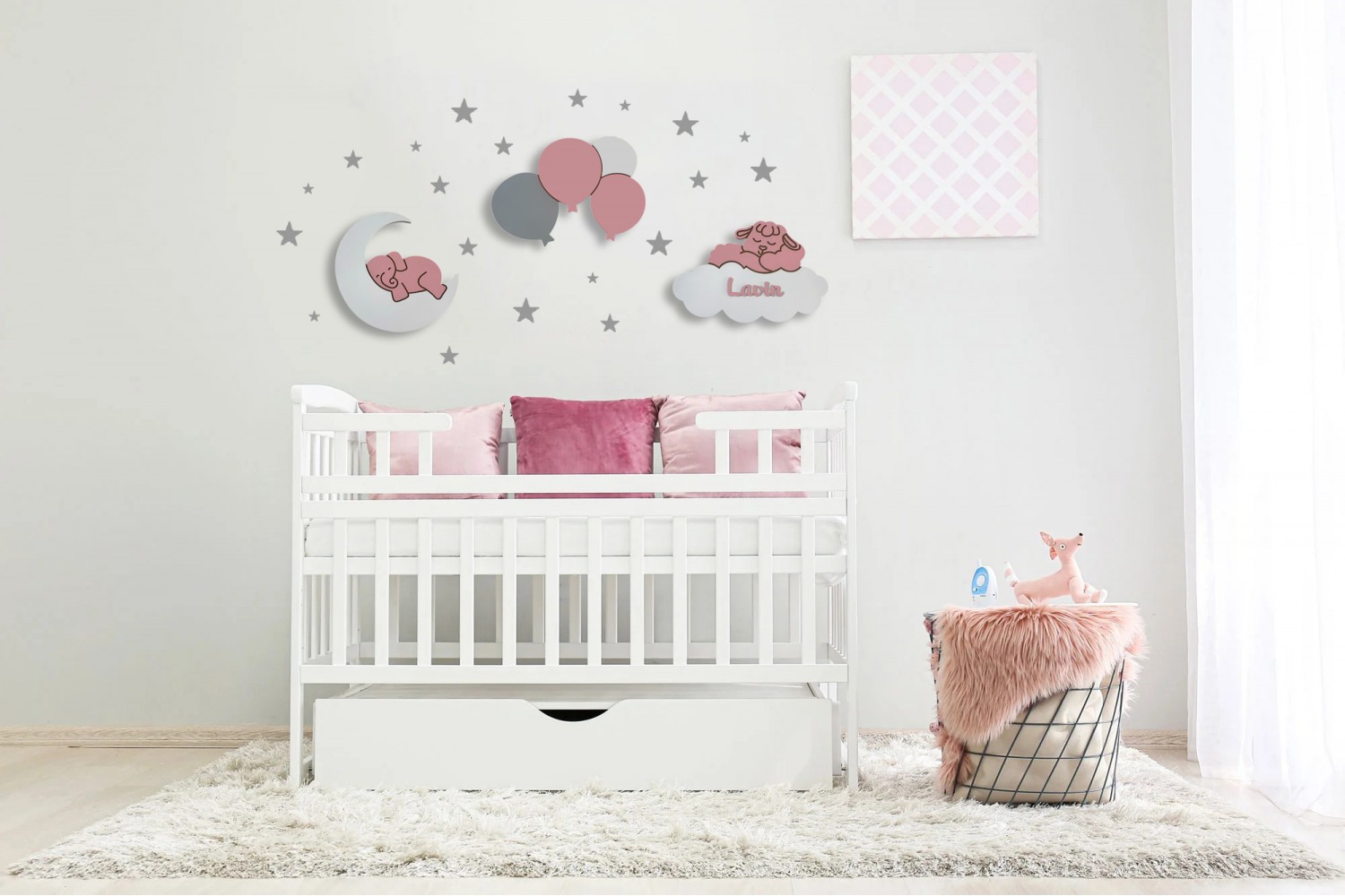 Görseldeki model ve renklerde bebeğin ismine özel olarak hazırlanır.