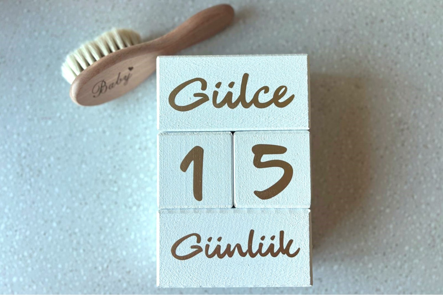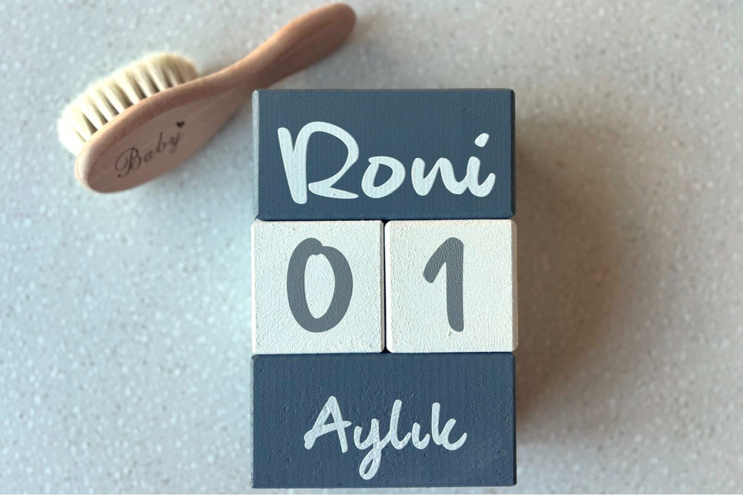 en yumuşak keçi kılından üretilmiş bebek saç fırçası ile hem hatıra hem de şık bir hediye seti.