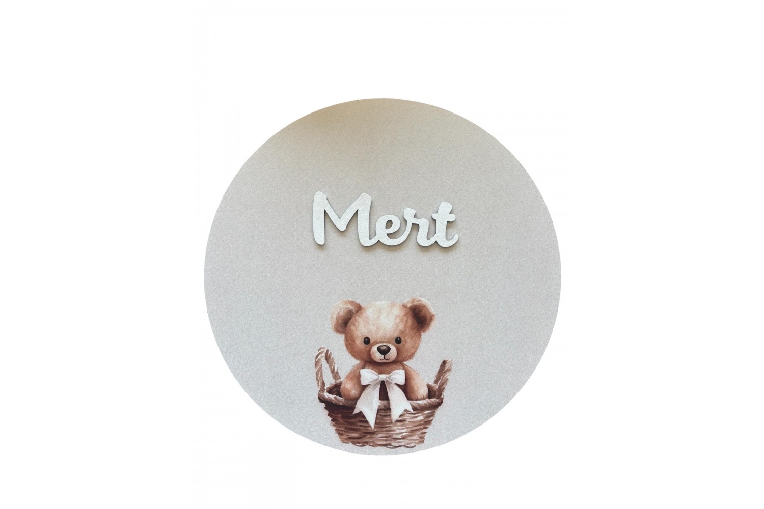 Tamamen doğal ahşaptan üretilen 30 cm çapındaki bu kapı süsü, bebeğinizin ismine özel hazırlanır.