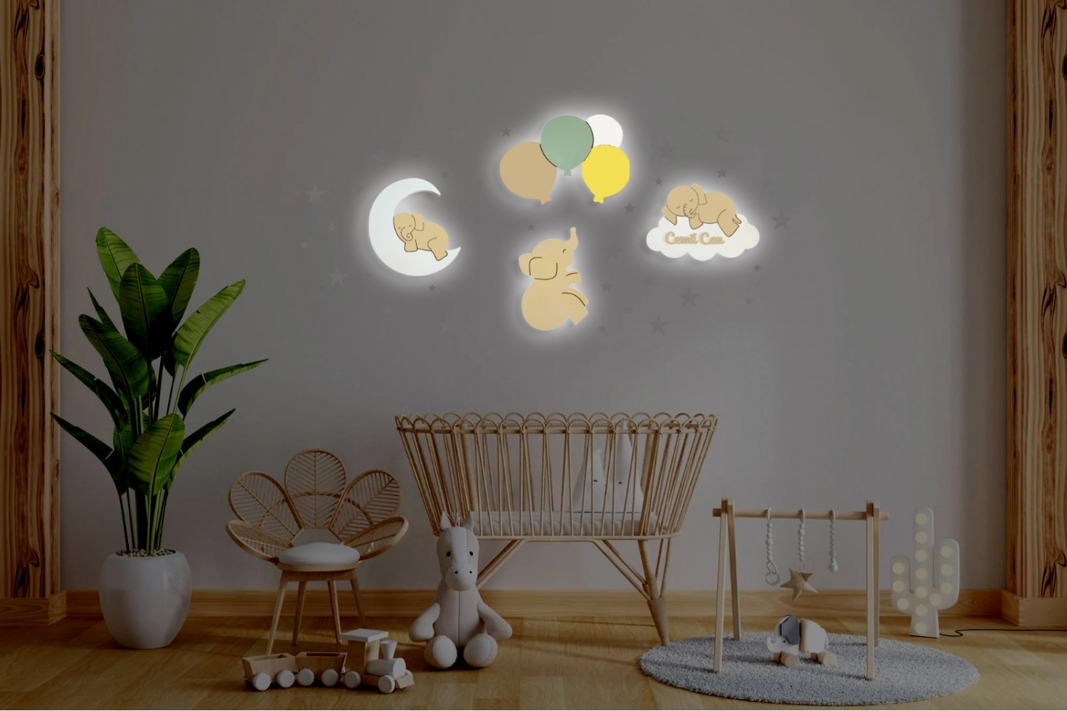 Her gece lambası, doğal boyalarla özenle elde boyanmıştır ve benzersiz, yumuşak bir görünüm sunar. Her parçayı özel kılan bu el işçiliği, çocuğunuzun odasına büyülü bir dokunuş katar.