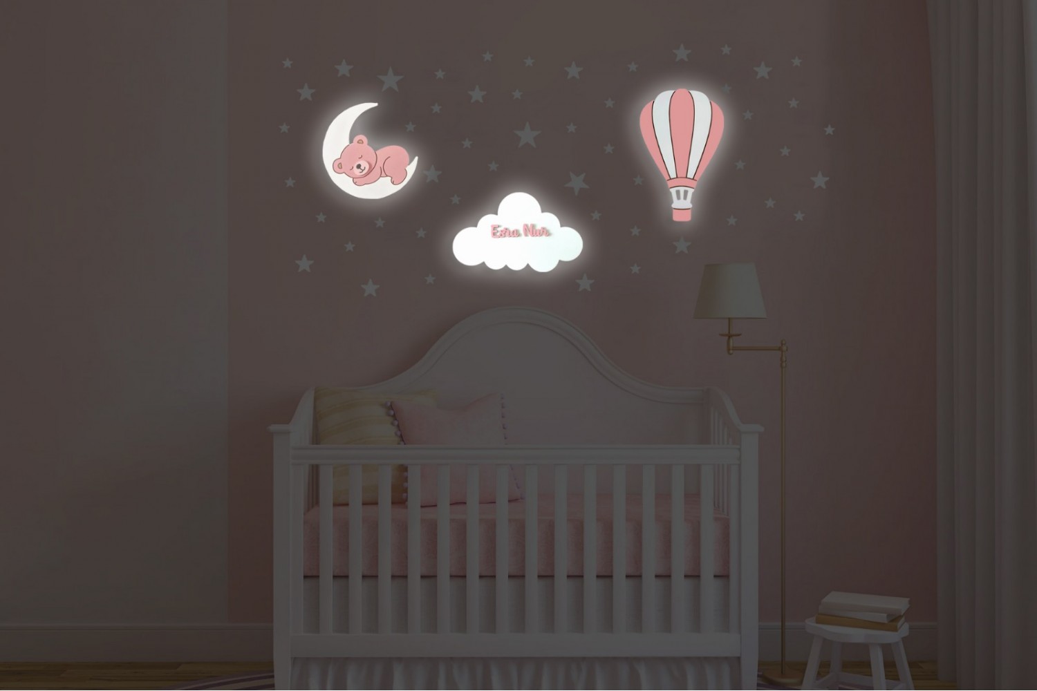 1 Beyaz Ay üzeri Pembe Ayıcık Lamba