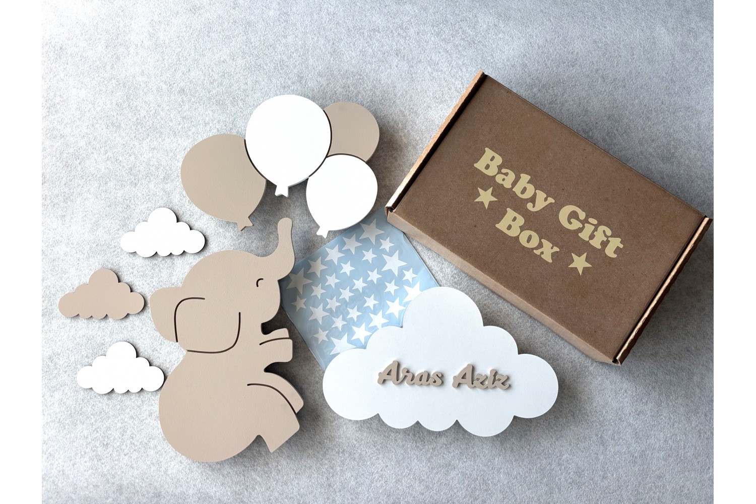 El boyaması fil lamba, çoklu balon, bebeğin ismine özel bulut lamba, ahşap bulut süsler ve yıldız stickerlar ile bebeğin odasını ilk günden sıcacık bir masal köşesine dönüştürür.