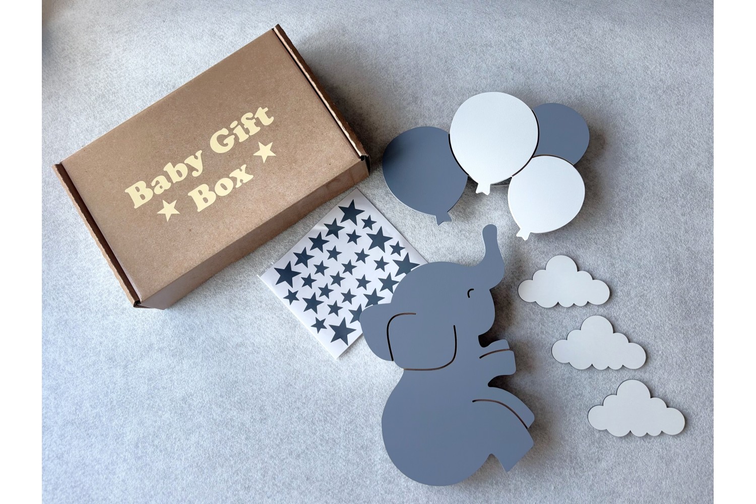 El boyaması fil lamba, çoklu balon lamba, ahşap bulut süsler ve yıldız stickerlar ile bebeğin odasını ilk günden sıcacık bir masal köşesine dönüştürür.